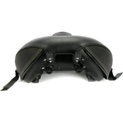 Embark on your next adventure with the MUSTANG Max Profile Solo Touring Seat in Black for your FLHC/FLDE '18-'21. This seat provides a deep bucket design for optimal comfort and keeps the rider in a confident cruising position. The top cover is made of premium expanded vinyl and the baseplate is constructed with sturdy marine-grade fiberglass. For added support, consider purchasing the matching passenger seat (sold separately) that angles forward to support the rider's back. Made in the USA for maximum quality and reliability. Experience the thrill of the open road with this must-have seat! Pairs with Mustang passenger seat part number - 75881 sold separately.