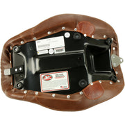 Take the reins with the MUSTANG Wide Tripper™ Forward Solo - Smooth - Brown - Dyna '06-'17. This seat shifts the rider 1.5" forward for easy access to handlebars and foot pedals. The meticulously crafted synthetic glove-leather stitching ensures lasting durability, while the seat's design allows for a low and comfortable ride. Made in the U.S.A. with a sturdy marine-grade fiberglass baseplate, this seat is perfect for riders who crave adventure and thrive on risk-taking!