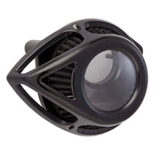 The Black Clear Tear Air Cleaner Kit redefines the iconic teardrop style with daring precision. Its O-ringed breather securely seals at the heads, routing air through the backing plate and proprietary shooter tubes straight into the throttle body's mouth. The radius window flips front or back, letting riders customize their bold look. Equipped with an integrated oil-catch, it keeps oil from contaminating the filter or blocking airflow. Built for durability with a coated radius-shaped polycarbonate top, a washable black pre-oiled cotton filter, and a forged, CNC-machined cage, this kit features stealthy breather backing plate technology for top-tier performance.