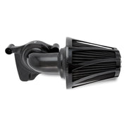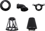 Black powdercoat backing plate & elbow with a black anodize finish filter cover