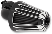 The Deep Cut® Monster Sucker® is a 90° performance air cleaner that features a massive forward facing filter design and our patented hidden breather backing technology for a reliable intake that enhances the performance of the engine. Deep Cut air filter cover is forged & CNC machined from billet aluminum. Will not fit models with fairing lowers.