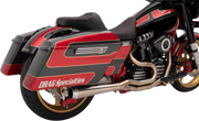 Features stepped, 1-3/4" to 1-7/8", equal-length headpipes designed for maximum performance, Included heat shields cover enough of the headpipes for heat protection but end inches from the collector to show off the stainless steel and hand TIG welding, Tapered, megaphone-style, short muffler body; system mounts off of transmission for that truly radical short look, System comes with 18 mm and 12 mm Oxygen ports with sensors, adapters and plugs, Includes removable baffle and end cap, Made in the U.S.A.