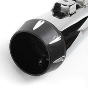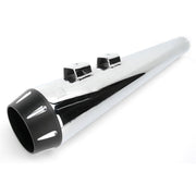 - Tapered megaphone-style muffler body with 4" black billet end cap with contrasting machined flutes
