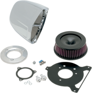The PowrFlo* intake system consists of an aluminum cover and all the fasteners, seals, backing plate and mounting hardware to make for an easy installation, Unique internal venturi design promotes maximum airflow, High-flow air filter element ensures the best air intake and maximum protection for your engine, Formed stainless steel mesh insert in the dual entry ports keeps out bugs and debris, 49-state emissions compliant, Made in the U.S.A.
