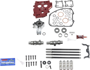 For '99-'06 Twin Cam except for '06 Dyna, All necessary components from top-to-bottom of the camchest, Provide maximum reliability, longevity, peak performance, and the coolest engine and oil temperatures obtainable, Quieter and smoother engine operation, Increase oil pressure, scavenge volume and engine oil flow, 25?-35? cooler engine temperatures, 15?-30? cooler oil temperatures, 15-30 more PSI of oil pressure, Eliminate wet sumping, blow by and oily air cleaners, Kit includes Feuling? high volume oil pump, High Flow camplate, Reaper? series camshafts, hydraulic roller lifters, quick install adjustable pushrods or one-piece pushrods, Timken? bearings, gaskets, o-rings, exhaust gaskets, ARP? fasteners, washers moly paste, Loctite?, and hardware