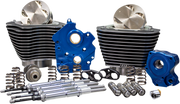 Big Bore Kit, Big-bore bolt-on kit increases 114"/117" with 4-1/2" stroke M-Eight to 128" with no case machining required, 4-1/4" bore cylinders with 11:1 forged pistons, Oil Pump/Cam Plate, S&S oil pump/cam plate with blue anodized finish, Passage plugs are removable for servicing, Independent scavenge sections for flywheel cavity and cam chest, Debris screen in both scavenge pickups, Magnet in cam chest to help prevent debris from entering the oil pump, Increased oil flow capacity on both the oil feed and scavenge side, Adjustable pressure relief valve can be adjusted with the unit installed in the engine, Pushrods, Quikee pushrods with chrome pushrod tubes, Tappets, S&S premium tappets, Tappet Cuffs, S&S hard-anodized, black coated tappet cuffs are billet aluminum construction, Improve tappet stability in high-lift, high-rpm situations, Cam, S&S 550 cams designed for big bore applications, Valve Springs, S&S valve springs work with cams up to .605" lift, High-performance conical single-wire spring design, All necessary gaskets, bearings and hardware for bolt-on installation is included