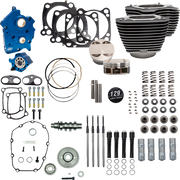 Transform 107" oil-cooled M8 into 129" with no case machining required, Big bore cylinders come with matching cam, cam plate and oil pump, Independent scavenge sections for flywheel cavity and cam chest, Magnet in cam chest to help prevent debris from entering oil pump, Feature high-performance conical single-wire S&S valve springs, Original engine serial numbers are retained, Passage plugs are removable for servicing, Debris screen in both scavenge pickups, MLS (multi-layered steel) head gaskets, Performance matched 550 cam, Works with stock crankcase, Made in the USA