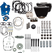 Transform 107" oil-cooled M8 into 129" with no case machining required, Big bore cylinders come with matching cam, cam plate and oil pump, Independent scavenge sections for flywheel cavity and cam chest, Magnet in cam chest to help prevent debris from entering oil pump, Feature high-performance conical single-wire S&S valve springs, Original engine serial numbers are retained, Passage plugs are removable for servicing, Debris screen in both scavenge pickups, MLS (multi-layered steel) head gaskets, Performance matched 550 cam, Works with stock crankcase, Made in the USA