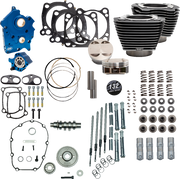 Transform the 114" or the 117" water-cooled M8 into 132", Adjustable pressure relief valve can be adjusted with unit installed in the engine, S&S valve springs feature high-performance conical single-wire spring design, Magnet in cam chest to help prevent debris from entering oil pump, Independent scavenge sections for flywheel cavity and cam chest, Big bore cylinders are matched with cam/cam plate and oil pump, Passage plugs are removable for servicing, Original engine serial numbers are retained, Debris screen in both scavenge pickups, MLS (multi-layered steel) head gaskets, Performance matched 550 cam, Works with stock crankcase, Retains stock engine height , Includes cam cover badge, Made in the USA