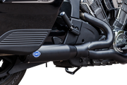 Experience the thrill of the S&S King of the Baggers racing with the 2-into-1 Qualifier Exhaust System - Race Only - Black - Stainless Steel! Push the limits and feel the power with this exhaust system designed to make you stand out on the track. Featuring full-length heat shields on both front and rear headers, and a stainless steel stepped header construction, this exhaust is built for the ultimate racing experience. Plus, it comes with saddlebag supports and an S&S race-inspired end cap. Made in the U.S.A. and intended for closed course competition use only. Get ready to dominate the race and leave your competition in the dust!