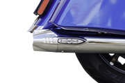 Take risks and make a statement with 4" Broadhead Slip-On Mufflers - Fishtail - Chrome. Use the removable dB reducer (J2825 compliant) for added control. Embrace a sleek look and classic style, proudly made in the U.S.A.