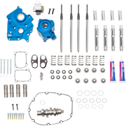 Oil Pump/Cam Plate:, Precision machined from billet aluminum, Blue anodized finish, Passage plugs removable for servicing, Independant scavenge sections for flywheel cavity and cam chest, Debris screens in both pickups, Magnet in cam chest to help stop debris from entering oil pump, Increased flow capacity on both feed and scavenge side, Adjustable pressure relief vale is adjustable with unit installed in engine, Includes S&S high performance cam chain tensioner, Pushrods:, Quickee pushrods, Tappets:, S&S precision tappets, Tappet Cuffs:, Hard anodized black coating, Billet aluminum construction, Stronger than stock material eliminates distortion, Improves tappet stability in high lift and high rpm situations, Cam:, Includes all gaskets, bearings and hardware for installation, Made in the USA