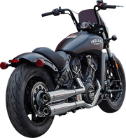 Take a chance with the Grand National Slip-On Mufflers - Chrome - Race Only! These high-performance mufflers will give your Scout a bold new sound. Simply bolt them on to the factory header pipes without needing to tune your EFI. With a removable dB reducer (J2825 compliant) and stainless steel baffles, you can customize the sound levels to fit your daring needs. Made in the U.S.A., these mufflers are sold in pairs and are perfect for adrenaline-fueled closed course competitions. Not for the faint of heart - these are not intended for street use.