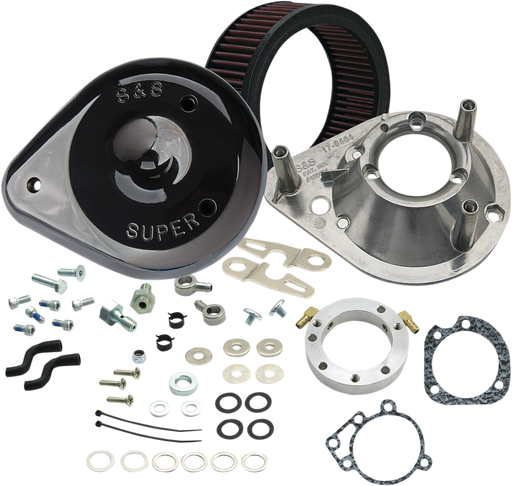Unleash your inner thrill-seeker with the S&S CYCLE Teardrop Air Cleaner Kit - Gloss Black! Conquer the open road with its included cover, back...