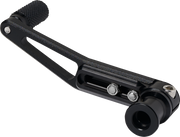 Drifter Shift Lever - Toe - Black Ops - FL Take greater control with brake levers and shift levers designed to put you in a position for ergonomic efficiency, Adjustable Drifter Shift Lever delivers the distinct performance bagger look without sacrificing comfort, 1" range of adjustability giving riders the option to run at stock length or up to 1" longer than stock, The Drifter Lever profile is aggressive and bolts right up to the factory mounting points to provide the rider the ability to customize lever location for the most desirable performance riding position, Created to match perfectly with the PM Drifter Floorboards, Shift peg and brake pedal platform included, Toe shift only, Made in USA
