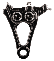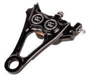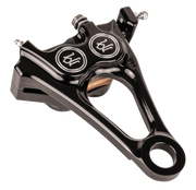 Designed to provide optimal braking power with no flex, Specifically engineered to mate perfectly with the M8 Softail stock rear brake, Features differential bore pistons that apply a different force at both the leading edge and the trailing edge of the pads to ensure superior braking, CNC machined from billet aluminum, ABS and non-ABS compatible, Chrome mounting hardware included, Made in the U.S.A.