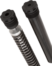Asymmetrical design places a preload adjuster over a progressive rate spring in one leg and an aluminum-bodied, sealed cartridge damper on the other; providing superior damping and ride control combined with tunable preload and a new benchmark for high performance suspension, Improves resistance to front brake dive, front end stability, cornering and bottoming control, Adjustable to standard length or to lower the front end up to 1*, Complete fork internal replacement kit, No modification for forks required, Made in the U.S.A