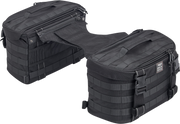 - Two-piece mounting yoke with adjustable hook and loop panel fastens to both bags with extra-large, heavy-duty nylon zippers