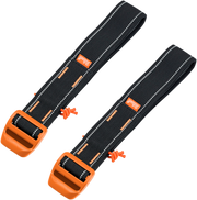 These all-purpose tie-down straps without complicated metal buckles are perfect for securing gear to a motorcycle, Both sides of the straps are stitched with reflective thread for increased visibility at night.