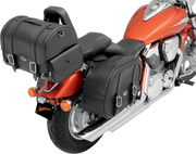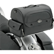 The Cruis'n Express Tail Bag combines rugged durability with sleek design using tough SaddleHyde and reinforced plastic panels. Its sturdy frame keeps the bag sharp, loaded or empty. Versatile mounting options let you attach it to a sissy bar, rack, or passenger seat, with heavy-duty chrome D-rings and multiple strap slots for quick, secure setup. Carry it effortlessly with a riveted top handle or removable shoulder strap. The weather-resistant hat-box style lid and two zippered side pockets guard your gear, while an internal mesh pocket keeps contents organized. Sized at 16" L x 10" W x 12" H (19" with pockets), it’s ready for any ride.