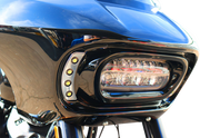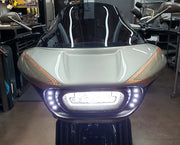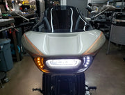 Bagger Nation’s super small, laser-bright Lightning Bolt daytime running lights are all the rage! With the creation of a super popular Sharknado Fairing Kits the design really begged for a Daytime Running Light option. Our answer… the Quad-Pod Daytime Running Light / Signal kit! Talk about sexy visibility! Check out our bolt-on billet mounting plates designed to hold four sets of our Lightning Bolts in perfect alignment.