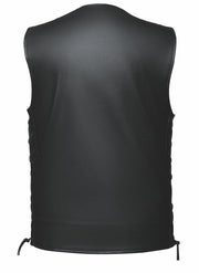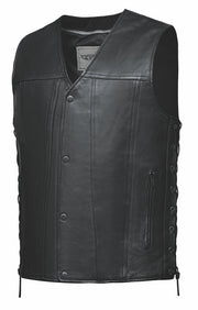 The Mens Premium Leather Vest by Unik Ultra blends rugged durability with a distinctive vintage-inspired style. Crafted from cowhide leather and meticulously designed in Pakistan, this vest features a unique color that adds character and charm. Ideal for motorcycle enthusiasts and those with a penchant for classic fashion, it offers practicality with its array of pockets, including concealed carry options, ensuring both functionality and timeless appeal.