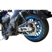 Transform your FLT '09-'24 into an aggressive and high-performance machine with the Chain Drive Conversion Kit - 57 Tooth - Black/Natural. This kit features specially designed front and rear sprockets for a bolt-on installation without the hassle of grinding the inner primary. Keep the factory gear ratio while enjoying the long-lasting durability of the heat treated and coated jagged style sprockets. The CNC machined billet aluminum Cush drive assembly adds a touch of boldness and strength with its black anodized finish. Pair this kit with a 530 chain (sold separately) and you're ready to take on any challenge with both factory and aftermarket Cush Drive rear wheels. (130 links long; chain will need to be cut down to size). Take your ride to the next level with this ultimate risk-taker's upgrade!