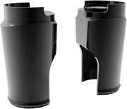 Experience the thrill of taking on new challenges with the ARLEN NESS Fat Tire Fork Boot Cover - Black Anodized - Smooth - '99-'13 FLT! Not only does it feature notched inside surfaces for effortless bolt-on fitment of 18" x 5.5" wide/fat front fenders and wheel kits, but its universal design also accommodates all aftermarket fat/wide front fender kits. Crafted from billet aluminum using CNC-machining, these fork boots are compatible with both factory and aftermarket fork legs. Don't forget to check clearances when installing with fat front wheel/fender applications. Take your touring experience to the next level with this daring addition to your bike!