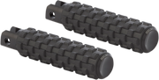 Get ready to conquer the road with ARLEN NESS Air Trax Male-Mount Footpegs! These footpegs are a bold fusion of traction, style, and comfort, crafted from strong billet aluminum. With an extra inch of length, these footpegs will surely elevate your riding experience. Take on any challenge with ARLEN NESS Air Trax Male-Mount Footpegs! CNC-machined billet end cap and laser-engraved logo on the outside matched with forged structure for maximum strength on the inside. The Kraton rubber repeating raised pattern allows for excellent hand traction and vibration dampening. These footpegs are 1" longer then the standard Arlen Ness Air Trax footpegs.