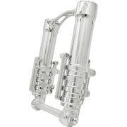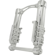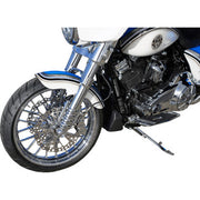 Rev up your riding experience with Method No Flex Inverted Fork Legs! These 49 mm chrome legs feature a racing-inspired design and integrated performance features that will take your Touring model to the next level. The *No Flex* fork brace adds both stability and style, CNC-machined from billet aluminum and boasting a sleek chrome finish. With 12-point style axle nuts and a dual disc design, these legs are designed for use with 11.8" brake rotors and can accommodate factory or custom radial mount brake calipers. Perfect for 18" to 19" front wheels (21" may require spacers), this set also includes fork seals, billet dust seal covers, and a steel axle. Give your bike a bold upgrade with Method No Flex Inverted Fork Legs - the ultimate choice for risk-takers and adventure-seekers! Factory Style Method fork legs will only work with either stock 11.8" rotors or 14” rotors with 14” calipers from Arlen Ness; Method fork legs will not work with Arlen Ness or aftermarket caliper adapters.