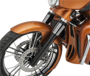 From the bold adventurer's perspective, embrace the risk with ARLEN NESS' Dual-Disc Hot Legs Fork Legs in Black Anodized for '14-'24 FLH/FLT models. CNC machined from billet aluminum, these legs boast a tapered design with a hidden axle, creating a smooth and sleek look. Upgrade your touring experience with dual-disc capabilities, allowing you to install factory or aftermarket suspension internals for a truly custom ride. Take on the road with confidence and style with these fork legs.
