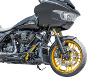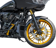 Rev up your ride with the ARLEN NESS Cafe Front Fender, crafted from the most advanced carbon composite materials available! With a bold custom window design and direct bolt-on fitment, this 19" fender offers seamless integration and UV-resistant, high gloss finish. Get ready to tackle the road with confidence and style, as this front fender allows for oversized brake rotors and is compatible with 130/60-19 front tires. Step out of your comfort zone and take the leap with this must-have accessory. Always remember to check clearances before painting or testing on the road. Are you ready for the thrill?