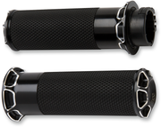Take on a bold and thrilling ride with ARLEN NESS Beveled Grips in Cable Black! These grips offer superior grip for your hands and feature precision-machined billet aluminum accents. Each grip comes with a pre-installed throttle sleeve and includes grip glue and easy-to-follow instructions, so your installation will be a breeze. Complete your daring look with matching footpegs and shifter pegs, available separately for maximum customization and adventure.