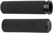 Grips - Knurled - TBW - Black Each grip design features excellent traction for your hands, Billet aluminum accents are intricately machined, Diamond Knurled rubber design features diamond knurled grips with integrated billet end caps for a clean design, All grips come with throttle sleeve installed and include grip glue and simple to follow instructions, Matching footpegs and shifter pegs are available separately