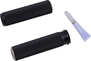 Intensify your riding experience with ARLEN NESS Knurled Grips - TBW - Titanium. These grips provide unbeatable grip for your hands, with intricately machined billet aluminum accents. The Diamond Knurled rubber design, complete with integrated billet end caps, boasts a clean and bold look. Throttle sleeve included, plus grip glue and easy instructions for straightforward installation. Complement your grips with separate options for matching footpegs and shifter pegs. Are you ready to conquer the road?