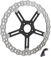 Upgrade your stopping power by up to 30% with the ARLEN NESS Big Brake Jagged Floating Rotor Kit - 15" - Right - Hub-Mount! Not only will it enhance your performance, but it will also elevate your factory wheel's style. This kit includes a 15" floating rotor, brake caliper adapter bracket, and all necessary chrome hardware. Designed to work seamlessly with factory fork legs, this kit is not compatible with Arlen Ness Hot Legs fork legs.
