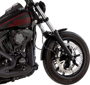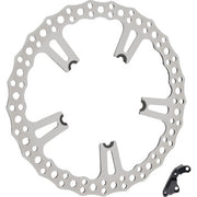 Unleash an unbeatable stopping power with the Big Brake Jagged Floating Rotor Kit - 15" - Right - Spoke-Mount. Take your performance and style to the next level with a 30% increase in stopping power and an upgraded, sleek design for your factory wheel. Each kit comes with an oversized 15" floating rotor, brake caliper adapter bracket, and all necessary chrome hardware. This kit is specifically designed to work with factory fork legs for a smooth and powerful ride. Don't miss out on this thrilling upgrade, but note that it will not fit Arlen Ness Hot Legs fork legs. For 19'' or bigger wheels.