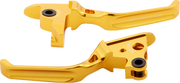 Experience the thrill of risk-taking with the Method Gold Lever Set. Ergonomically designed and forged for improved performance, these hand levers are crafted with precision and polished to perfection. Cutouts on the backside reduce weight for a lightweight feel. Each lever bears the bold and unmistakable Arlen Ness logo, adding to the challenge and adventure of your ride. Includes both throttle side and clutch side levers.
