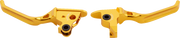 Unleash your inner daredevil with ARLEN NESS's Lever Set - Method - Gold. These forged hand levers are designed for maximum performance and comfort, with an ergonomic shape and short length. Each lever is carefully shaped to enhance control and reduce weight, while the CNC machined aluminum and polished finish create a sleek and sculpted look. The set includes both throttle and clutch levers, each proudly featuring laser-engraved Arlen Ness logos. Take control of the road with these bold and daring levers!