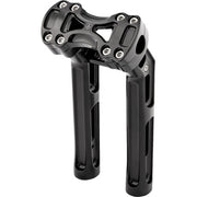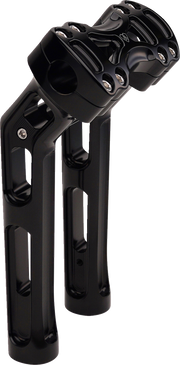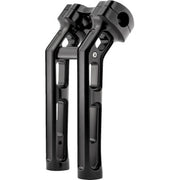 Take control with ARLEN NESS Method Kickback Handlebar Riser - 10" - Black! These billet risers feature an added 1-1/2" kickback for the perfect mix of comfort and control. CNC machined windows and sculpted pockets provide a sleek look, while the integrated billet crossbar adds rigidity and serves as a wire guide for a clean installation. Reach new heights with Method Kickback Handlebar Riser from ARLEN NESS! Designed to fit most Harley-Davidson models with 1" clamping and 3-1/2” handlebar centers.