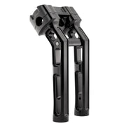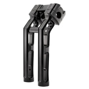 The Method Kickback Handlebar Riser in matte black (10") offers a bold 1-1/2° kickback angle, striking the ideal balance between comfort and control. Featuring sharp, aggressive styling with machined windows and sculpted pockets, its CNC-machined recess on the bottom removes the need for top cup washers. Built to fit both factory and aftermarket front ends, it accommodates factory gauges but requires removal of the stock plastic gauge nacelle—perfect for riders looking to elevate their Softail’s look and feel.