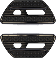 • Vibration insulating footrests offer enhanced foot traction through Airtrax style rubber tops with a proprietary internal structure engineered specifically to absorb vibration associated with v-twin engines