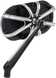 Dare to stand out with the ARLEN NESS Mirror - Side View - Caged Series 10 Gauge - Black - Left. Precision-crafted from aluminum and meticulously CNC-machined, equipped with heavy-duty stainless steel pivot hardware, and adorned with a bold laser-engraved Arlen Ness logo. Includes standard and metric mounting hardware for easy installation. Light yet durable multi-piece design for a dynamic ride. Oval Mirror heads measure 5-3/4" wide x 2-1/2" tall.