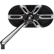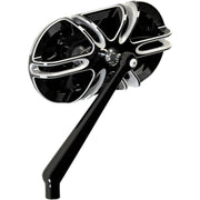 Take on the open road with the ARLEN NESS Mirror - Side View - Caged Series Deep Cut - Black - Left. Crafted from aluminum and precision CNC-machined, this mirror features heavy-duty stainless steel hardware and includes both standard and metric mounting hardware. Its multi-piece design is lightweight and boasts a laser engraved Arlen Ness logo. Oval Mirror heads measure 5-3/4" wide  x  2-1/2" tall.