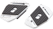Take your riding experience to the next level with precision-engineered ARLEN NESS SpeedLiner Passenger Floorboards in bold chrome finish. Designed with risk-taking in mind, these floorboards feature a CNC machined 3D knurled design and oversized knurled rubber for ultimate foot grip and comfort. Crafted from aircraft quality billet aluminum, these floorboards are built to withstand any adventure. Complete your look with the matching SpeedLiner driver floorboards and other SpeedLiner accessories. The specially formed rubber insert not only offers increased foot traction, but also reduces passenger vibration. Featuring the iconic Arlen Ness laser logo, these floorboards are a must-have for any FL Touring model equipped with passenger floorboard mounts. Upgrade your ride today!