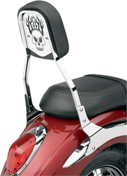 Add flair to a Cobra backrest, Engraved with the Cobra logo, Polished, then finished with show chrome, Fit Cobra round or square sissy bars, Made in the U.S.A.