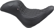 Unleash your Fat Boy's aggressive stance with the MUSTANG Extreme Fastback. This badass seat combines a deep, low-cut bucket with a towering tail section that delivers uncompromising back support while creating a menacing race-inspired profile. The hand-stitched double-diamond pattern up front transitions to perforated vinyl on the wide rear section, perfectly complementing your Fat Boy's muscular lines. The 11-1/2" wide rider area cradles you in low-profile comfort while Mustang's proprietary foam maintains its shape through years of hard riding. Built on a marine-grade fiberglass base with vibration-killing polyurethane bumpers, this American-made beast transforms both your bike's attitude and your riding experience.