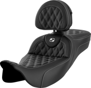 Roadsofa™ Extended Reach Seat - Lattice Stitch - White Stitch - with Backrest - Touring '08-'24