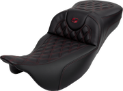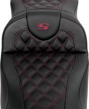 SADDLEMEN Roadsofa™ Extended Reach Seat - Lattice Stitch - Wine Berry Stitch - with Backrest - Touring '08-'24