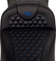 RoadSofa™ Seat - Honeycomb - Blue Stitch - Extended Reach - without Backrest - Touring '08-'24